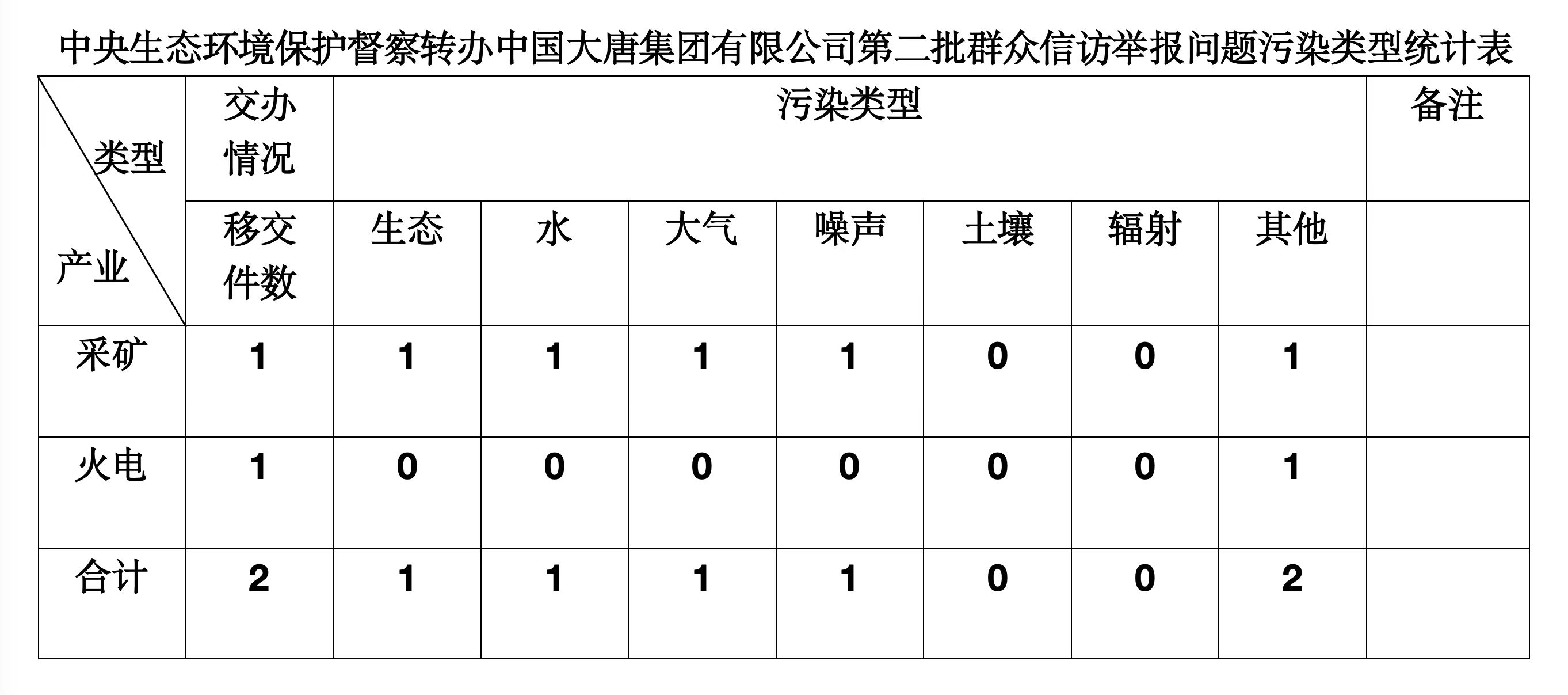 2025年6月4日,中央第七生態(tài)環(huán)境保護(hù)督察組向中國大唐集團(tuán)有限公司移交第二批群眾信訪舉報(bào)件,共計(jì)2件,來電舉報(bào)和來信舉報(bào)各1件,涉及生態(tài)問題1個、水問題1個、大氣問題1個、噪聲問題1個、其他問題2個。所有舉報(bào)件辦理工作已第一時(shí)間進(jìn)入調(diào)查核實(shí)辦理程序,辦理情況將按照相關(guān)要求反饋督察組,并及時(shí)向社會公開。